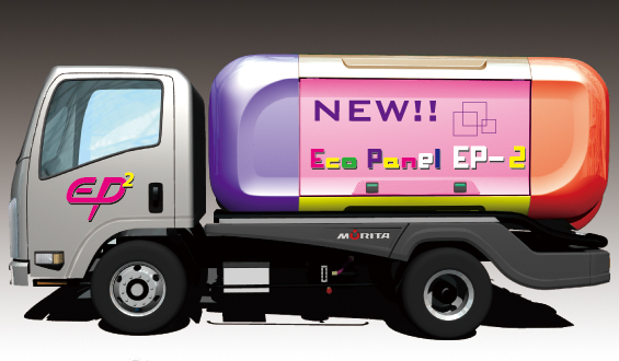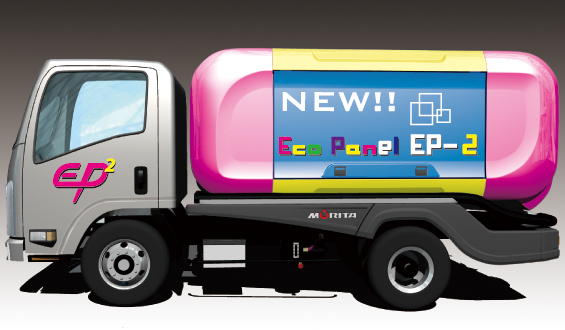 すでにたくさんの方々にご愛顧いただいている ”エコパネル(EP)”の設計思想を受け継いだエコパネル式バキュームカー「EP-2®」を開発しました。「EP-2®」のロゴは、植物の新芽をモチーフにピュアでバイタリティあふれるイメージを表現。これまでの”覆い隠す”イメージから”魅せる”イメージに発想転換。3t車に対応可能です。スタイリッシュなデザインと作業性にこだわり、クリーンなイメージでバキュームカーが地域社会にも調和します。約20種類の基本デザインの中から、色・字体などをアレンジすることでお客様の独自デザインをご用意いたします。