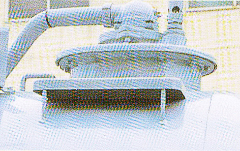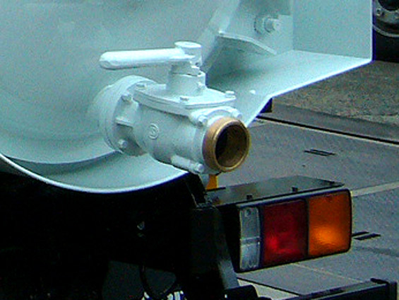 汚水の吸入中、タンク内が満量になれば吸排切換コックレバーを「吸入」→「中立」にし、吸入コックを閉めてやり、タンク内を大気圧にしてやります。次に、汚水排出コックを開け汚水を排出します。また、吸排切換コックレバーを「中立」→「排出」にし、タンク内を加圧しますと汚水は勢いよく排出されます。