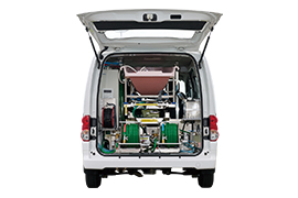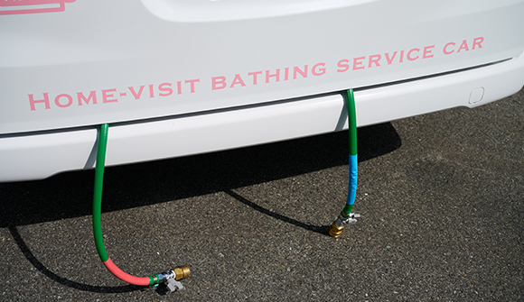 介護サービス中に、後部ハッチを施錠したまま送湯・送水ホースを