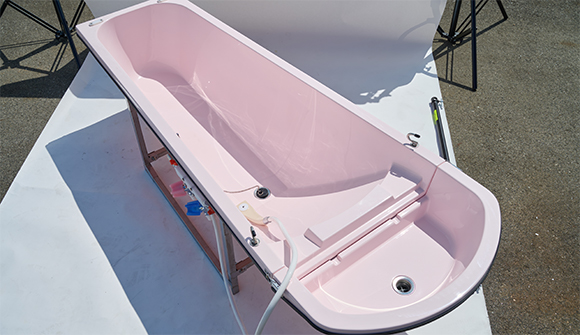 車両後部まで浴槽を引き出せることで浴槽の出し入れが容易にできます。